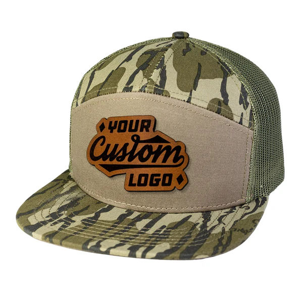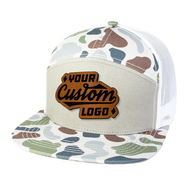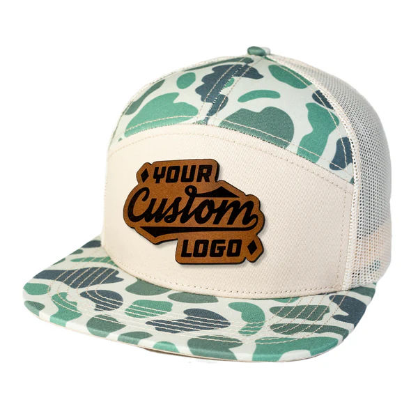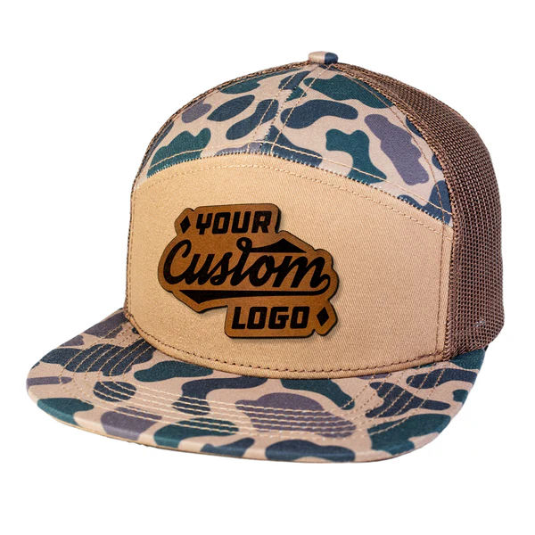 หมวกแก๊ป ODM แบบกำหนดเอง ปักลายหนัง ลายพราง 7 แผง 168 สไตล์สปอร์ต ปีกแบน หมวกแก๊ปตาข่ายระบายอากาศ ปรับขนาดได้