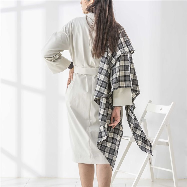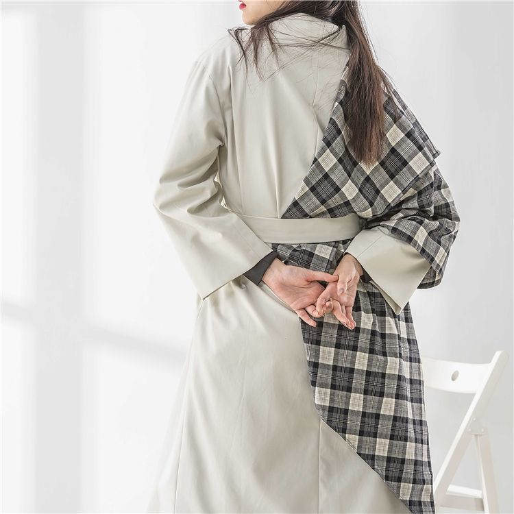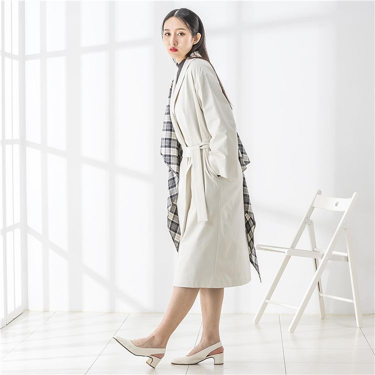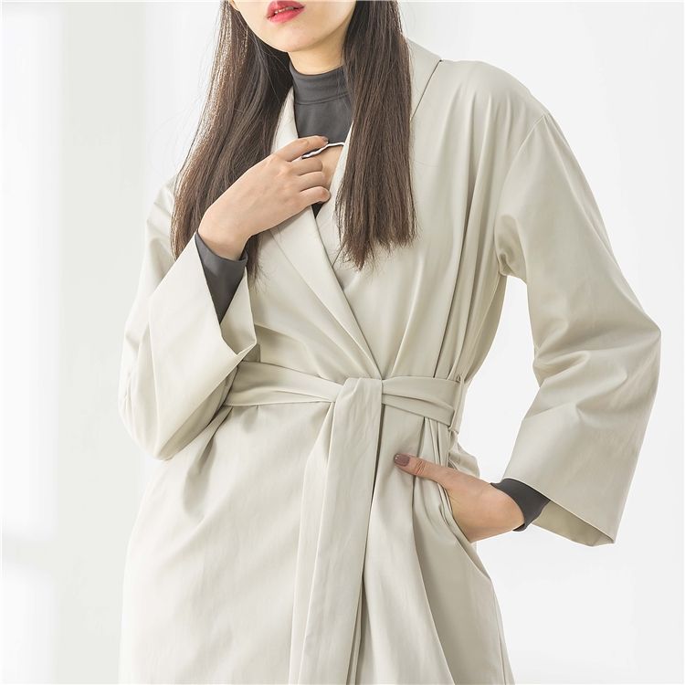 เสื้อโค้ทกันลมระบายอากาศได้ดี เป็นมิตรกับสิ่งแวดล้อม สำหรับผู้หญิง สีเบจขาว แบบยาว