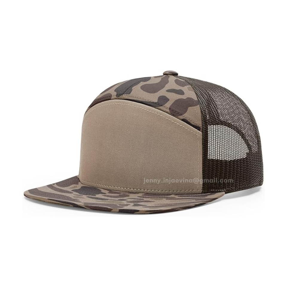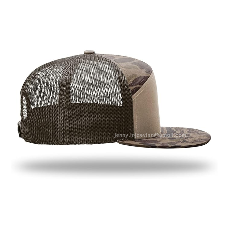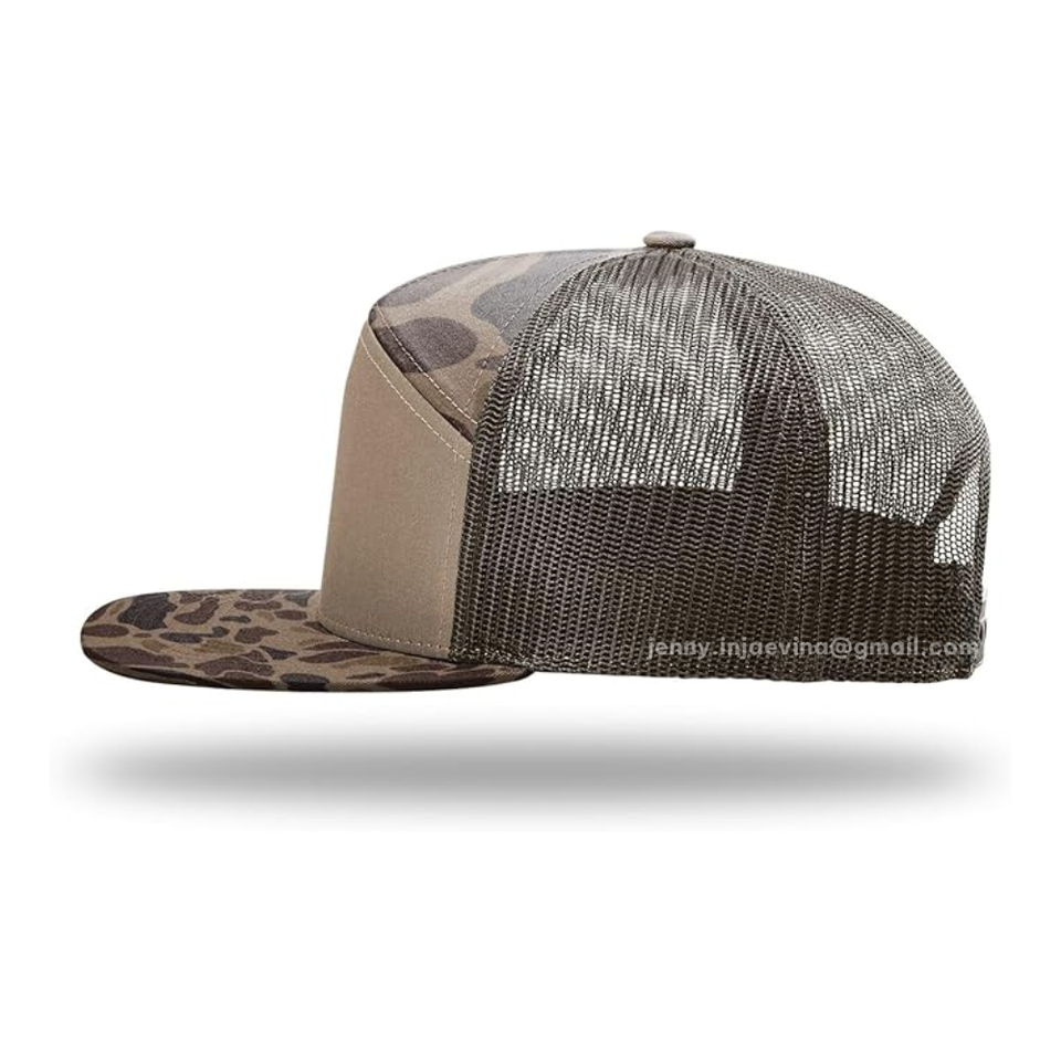 หมวกแก๊ปทรง Trucker คุณภาพสูง ODM ลายพรางสำหรับกิจกรรมกลางแจ้ง ด้านหลังเป็นตาข่าย ปรับขนาดได้ พร้อมโลโก้สั่งทำ ระบายอากาศได้ดี