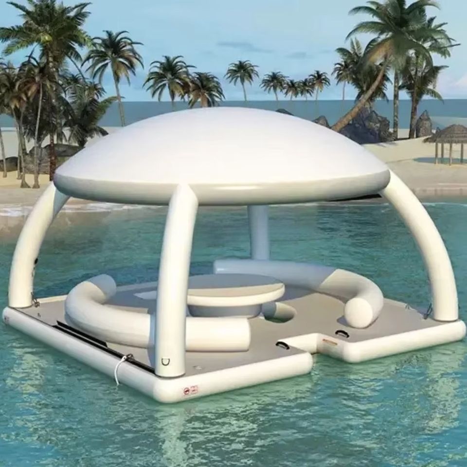 เต็นท์สระน้ำเป่าลมขนาด100-500กก. เรือแพลตฟอร์มลอยบนเกาะวัสดุพีวีซีความจุการใช้งานกลางแจ้ง