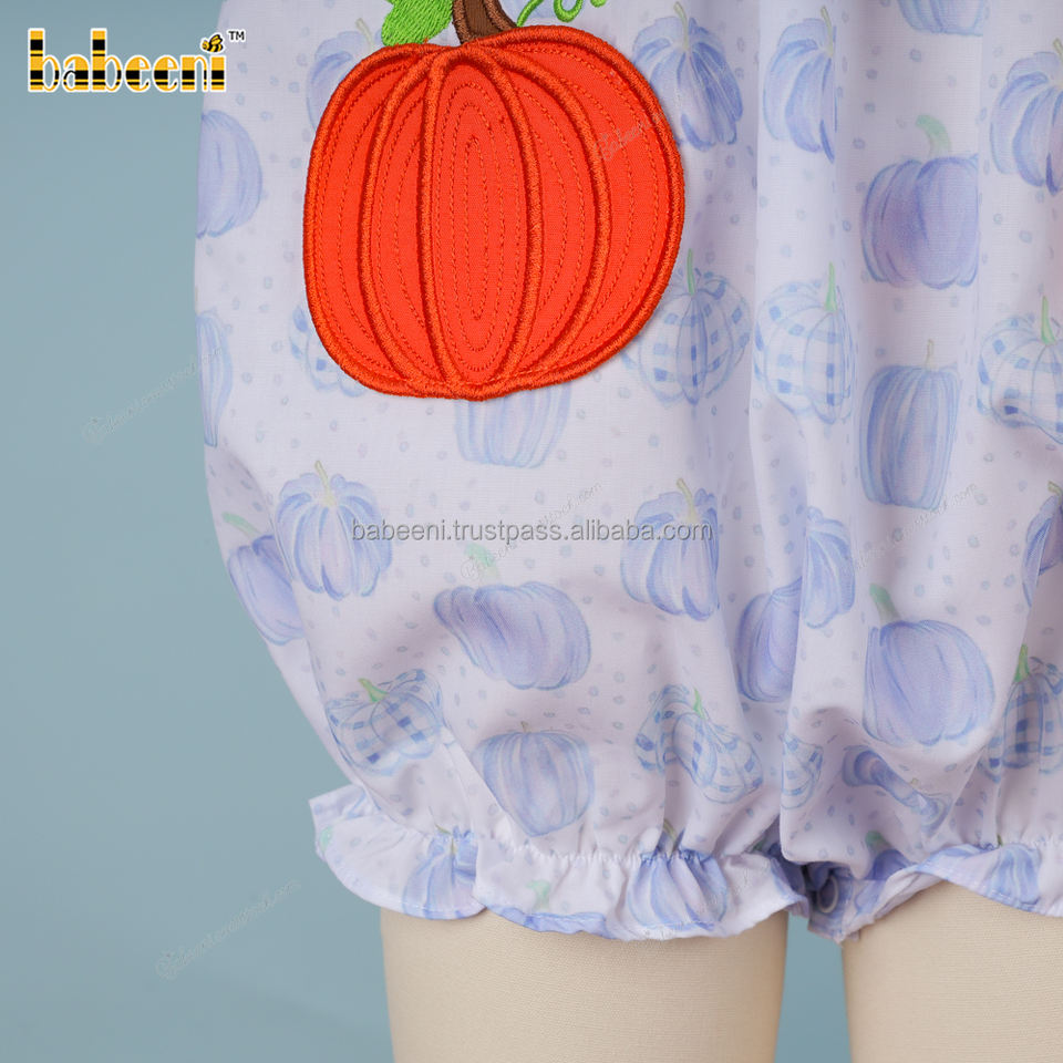 ชุดรอมเปอร์เด็กผู้ชายผ้าฝ้าย 100% ได้รับการรับรองมาตรฐาน OEKO-TEX สีฟ้าลายฟักทองประดับระบาย แขนสั้น ติดกระดุมแป๊ก สำหรับฤดูร้อน (ODM OEM)