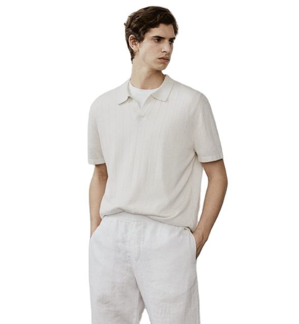 ODM & OEM เสื้อยืดกอล์ฟคอวีแขนสั้นของผู้ชายผ้าลินินผสมผ้าฝ้ายทรงพอดีตัวปกติ