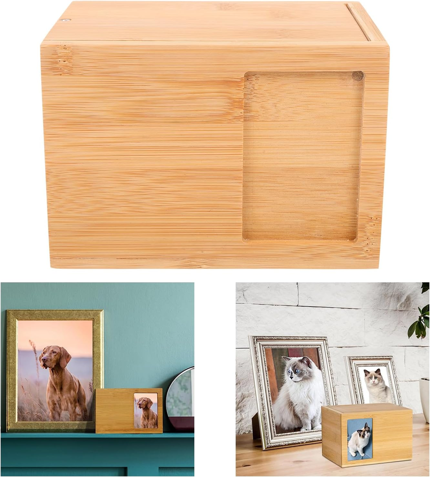 ODM กล่องใส่ขี้เถ้าโกศไม้สำหรับสัตว์เลี้ยงปรับแต่งได้ทันสมัยพร้อมกรอบรูปสำหรับความทรงจำของสัตว์แมวสุนัขตัวเล็ก