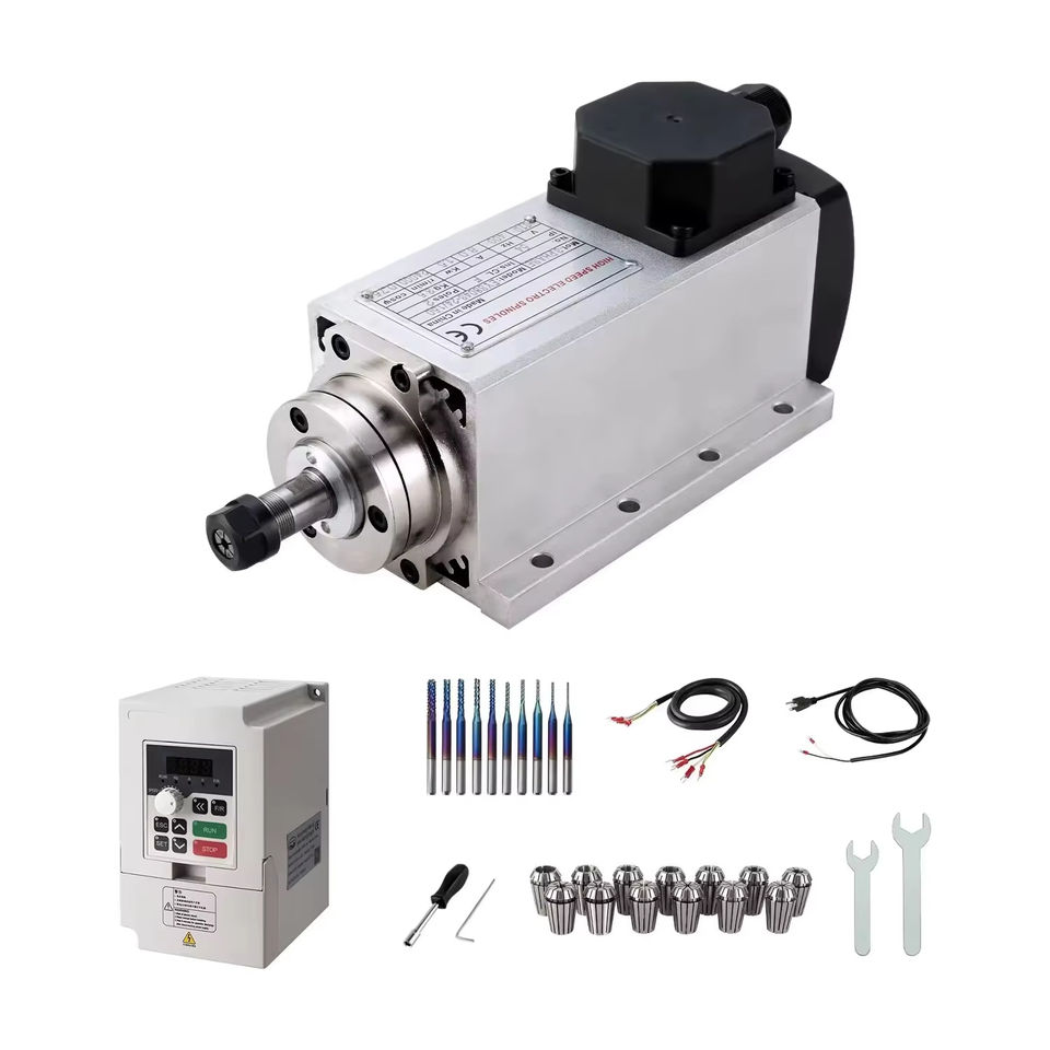ชุดมอเตอร์แกนหมุนระบายความร้อนด้วยอากาศ110V/220V 1.5kW ER16พร้อมชุด VFD อินเวอร์เตอร์สำหรับเครื่องเราเตอร์ CNC