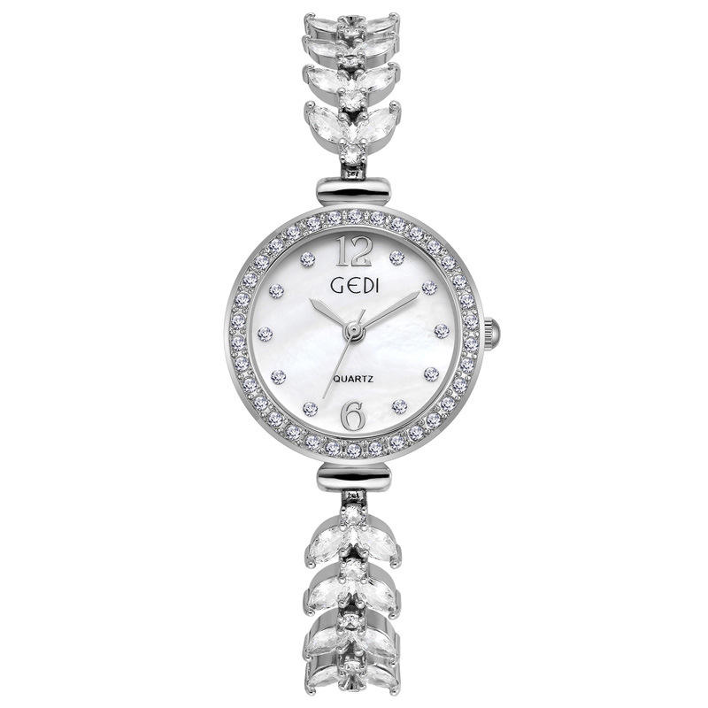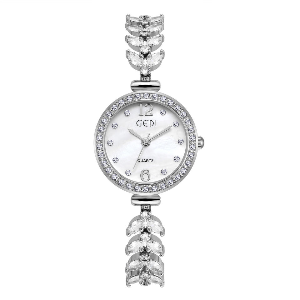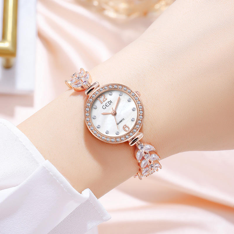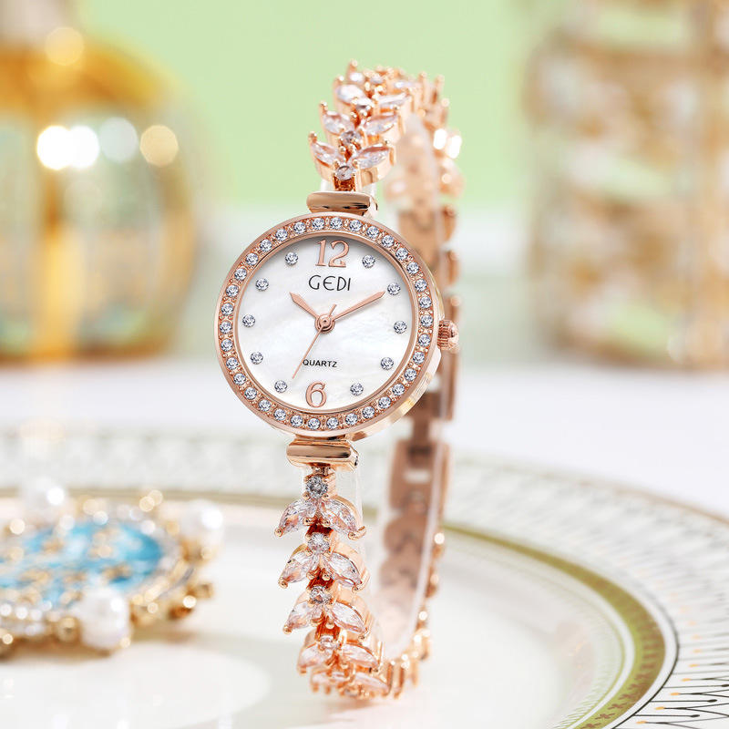 ผู้ผลิต ODM OEM รับทำโลโก้ตามสั่ง นาฬิกาข้อมือผู้หญิงหรูหราประดับมุกและเพชรเทียม สีเงินและโรสโกลด์ สำหรับเป็นของขวัญบริษัท