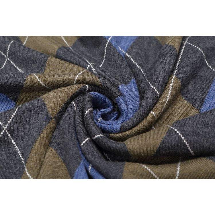 ODM เสื้อสเวตเตอร์คอกลมสำหรับผู้ชายเสื้อสเวตเตอร์คอกลมลายรูปแบบคล้ายเพชรหลายสีแขนยาวเข้ารูป