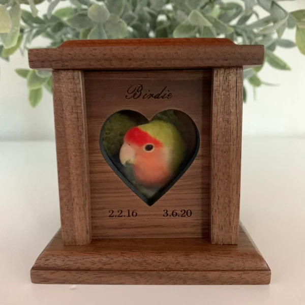 สไตล์โมเดิร์น ODM OEM ไม้โกศขนาดเล็กสำหรับสัตว์เลี้ยงขนาดเล็ก8ปอนด์เช่นสุนัขแมวและนกพร้อมช่องใส่ภาพส่วนตัว & ช่องสี่เหลี่ยมขนาด4"