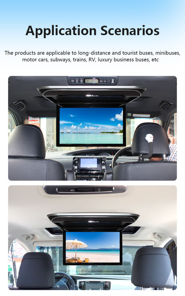 โรงงาน ODM OEM ขายส่งจอภาพติดหลังคาขนาด 17 นิ้ว แบบพับเก็บได้ด้วยมือ จอ LCD ทีวีติดเพดานแบบพับได้ จอแสดงผลอัจฉริยะ HD สำหรับรถยนต์มินิแวนและรถบ้าน