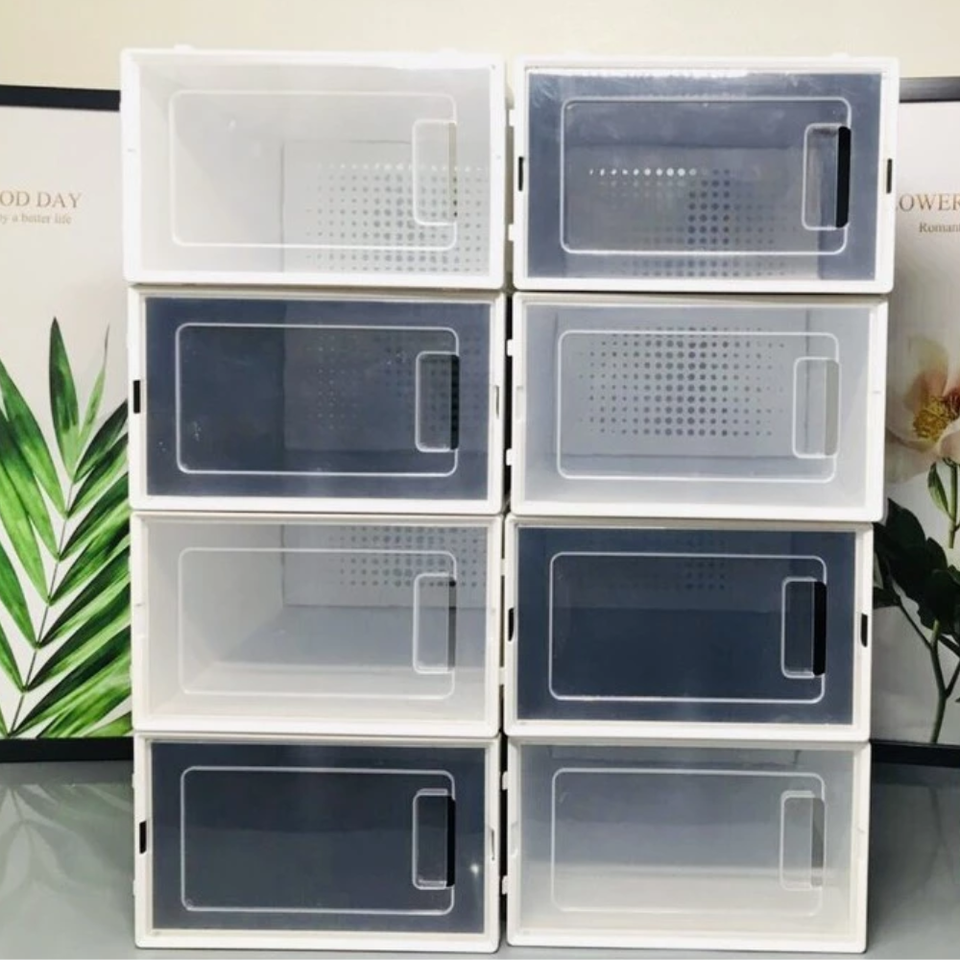ODM กล่องรองเท้าพลาสติกประกอบกล่องรองเท้าพร้อมฝาพลาสติกแข็งตู้รองเท้าพลาสติกทนทานโรงงานเวียดนาม