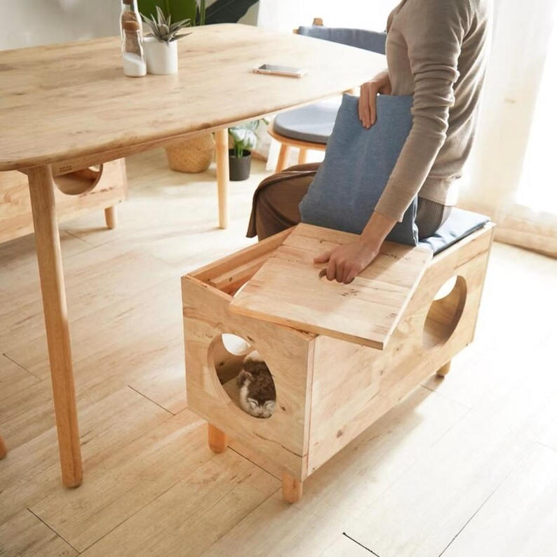 เตียงสัตว์เลี้ยงตามสั่งโต๊ะกาแฟทำจากไม้เบิร์ชบ้านแมวทันสมัย