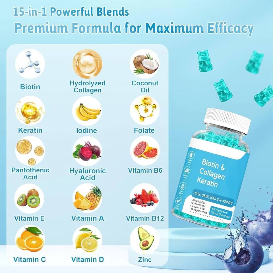 คอลลาเจนกัมมี่แบบ ODM/OEM แบรนด์ส่วนตัว ผสมวิตามินซี คอลลาเจนเปปไทด์ไฮโดรไลซ์ บำรุงผิวเพื่อสุขภาพ