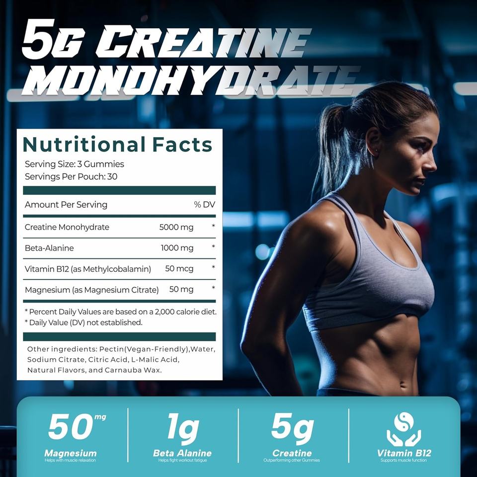 วิตามินเสริมอาหารแบบกัมมี่ ครีเอทีน โมโนไฮเดรต สำหรับผู้ใหญ่ ผลิตแบบ ODM/OEM และฉลากสินค้าส่วนตัว