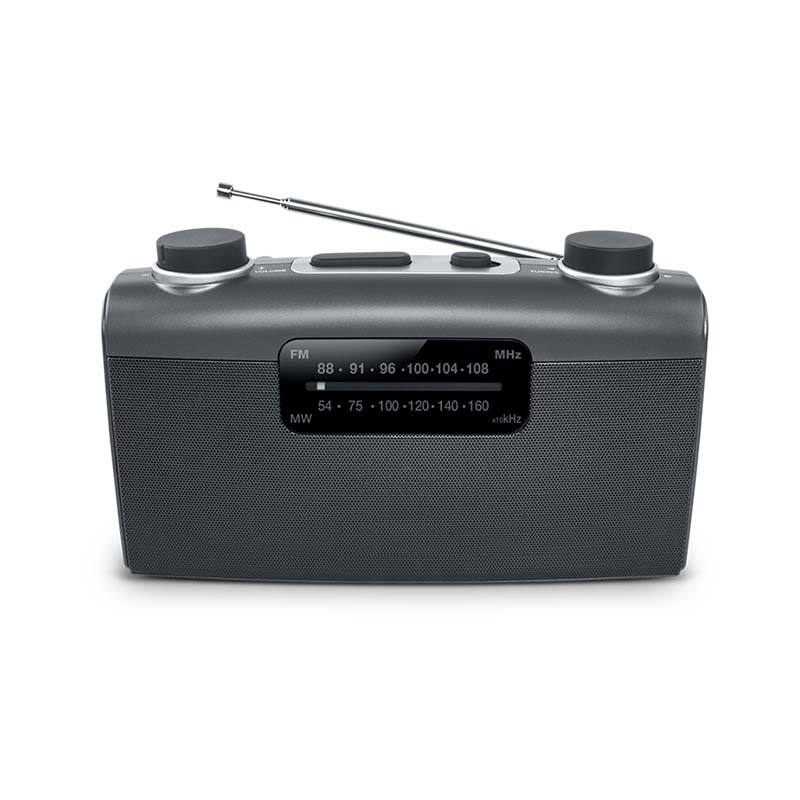 วิทยุพกพา ODM แบบอนาล็อก FM AM สไตล์วินเทจ ใช้ได้ทั้งไฟ AC และ DC พร้อมช่องเสียบอุปกรณ์เสริม ช่องเสียบโทรศัพท์ สายไฟ AC และช่องเก็บของ - ผลิตจากพลาสติก