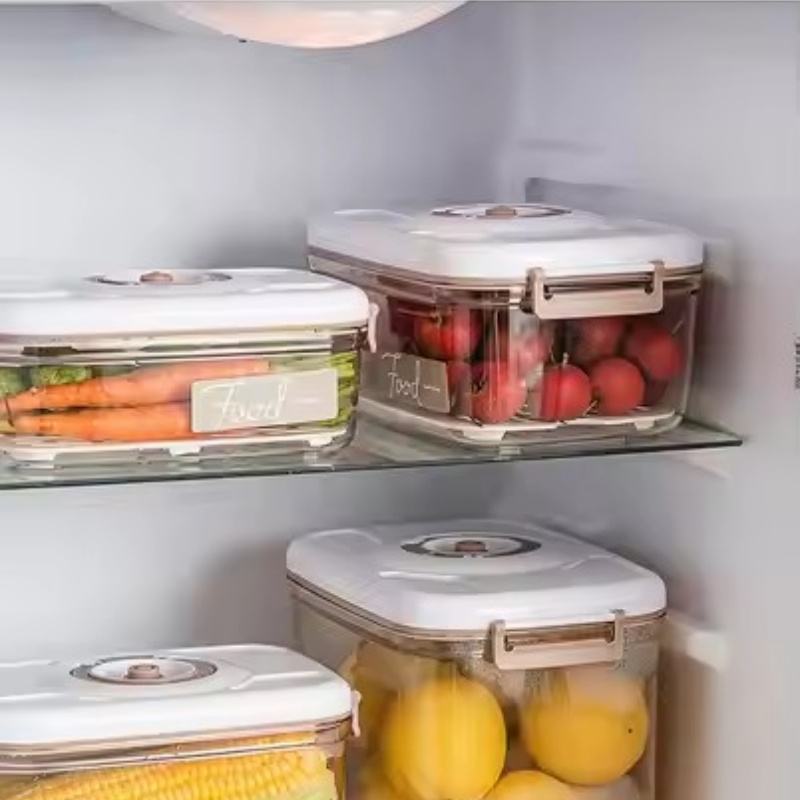 ODM กล่องเก็บอาหารในห้องครัวแบบเรียบง่ายกล่องเก็บผลไม้สุญญากาศพลาสติกใสสำหรับจัดระเบียบในสำนักงาน