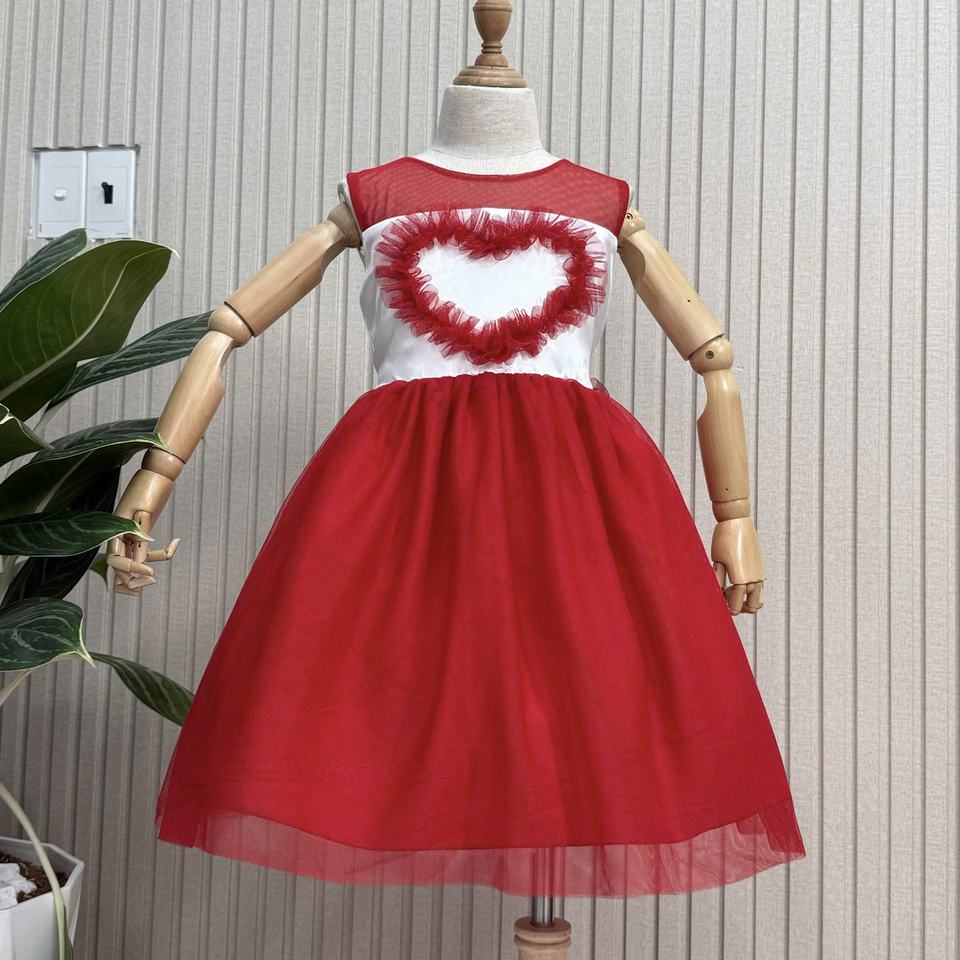 เดรสสั้นเจ้าหญิงลายหัวใจน่ารักปรับแต่งได้ชุดเดรสแฟนซีสำหรับเด็ก