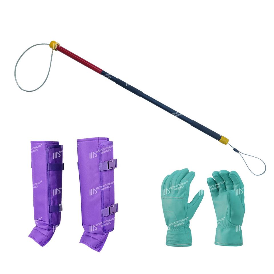 ชุดเครื่องมือสัตวแพทย์ ODM ถุงมือควบคุมการเห่า ปลอกขา 100% กันน้ำ ทนต่อการกัด คันเบ็ดโลหะผสมคุณภาพสูงสำหรับสุนัขและสัตว์