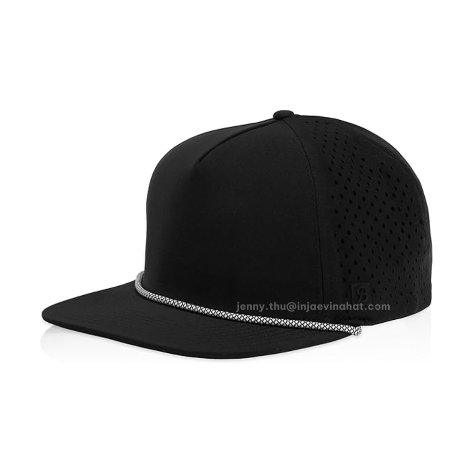หมวกกอล์ฟกันน้ำ ODM คุณภาพสูง พิมพ์โลโก้ได้ตามต้องการ ปีกแบน สีพื้น ผ้าโพลีเอสเตอร์ผสมสแปนเด็กซ์ ตัดด้วยเลเซอร์ สำหรับเล่นกีฬา