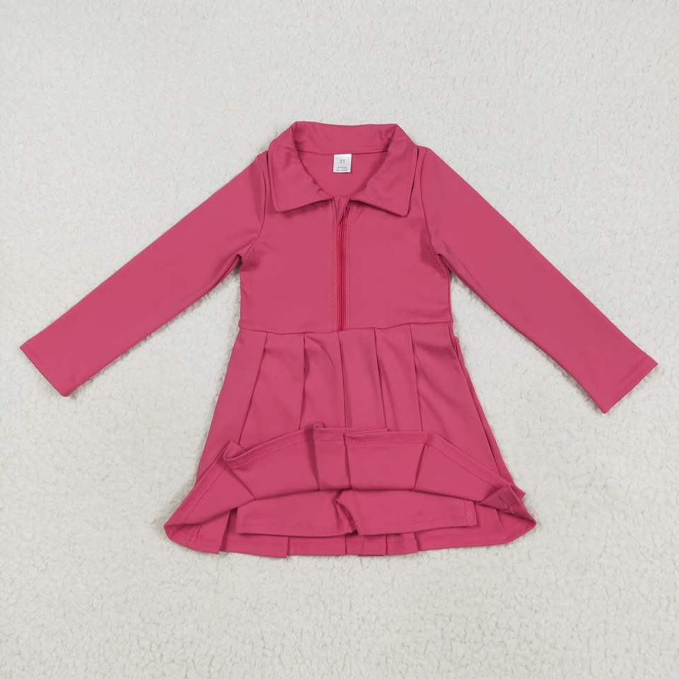 เดรสแขนยาวสำหรับเด็กผู้หญิงตัวเล็กพิมพ์ลายบูติกสีแดงทึบมีซิปตกแต่งดอกไม้สำหรับฤดูร้อน