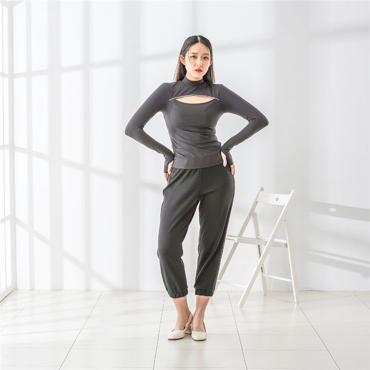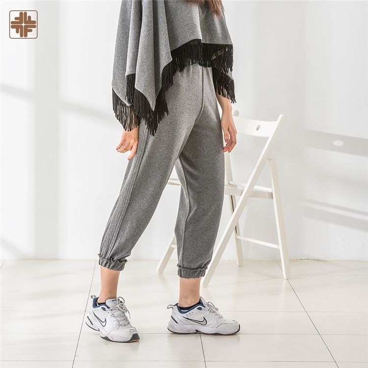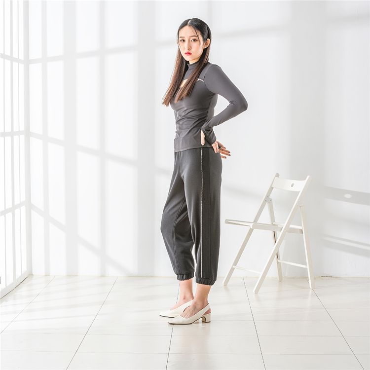 กางเกงเอวยางยืดผู้หญิงสีดำผ้าฝ้ายออร์แกนิค
