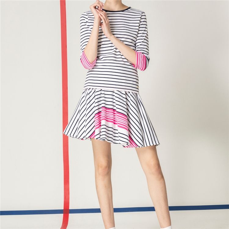 กระโปรงโพลีเอสเตอร์ผ้าฝ้ายลายแถบขนาดเล็กสำหรับผู้หญิง OTM