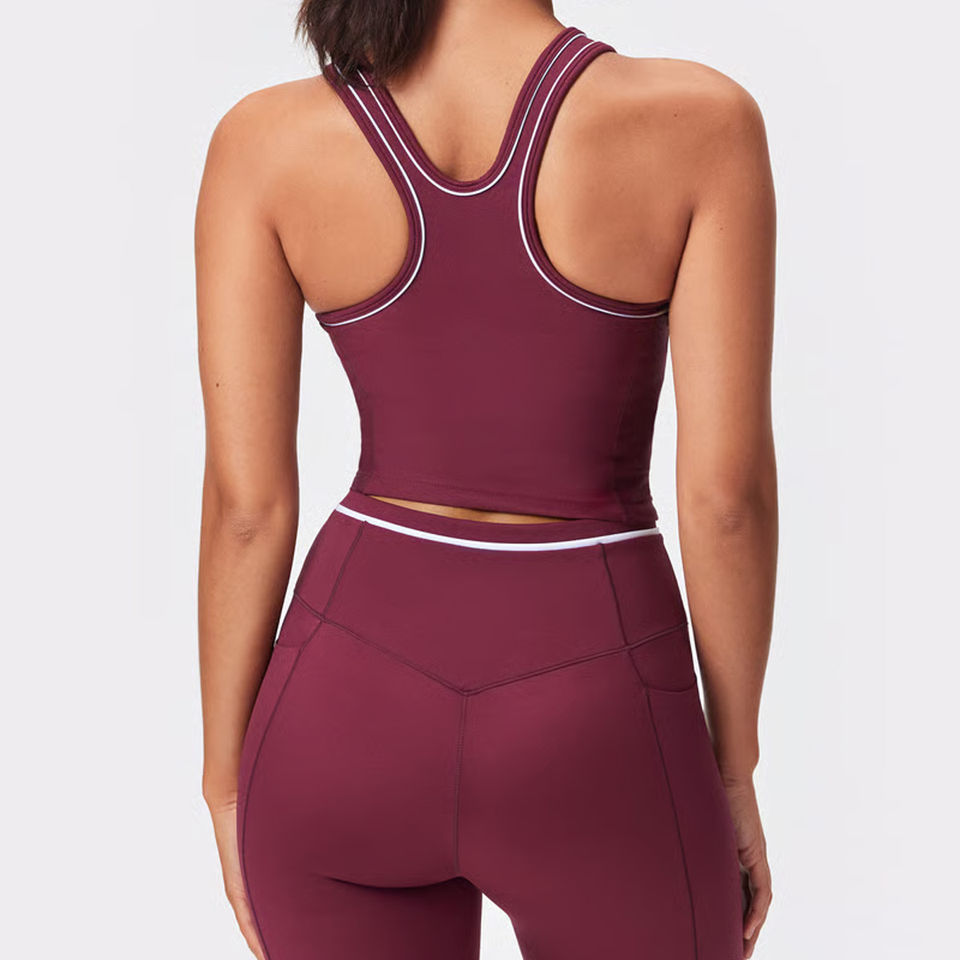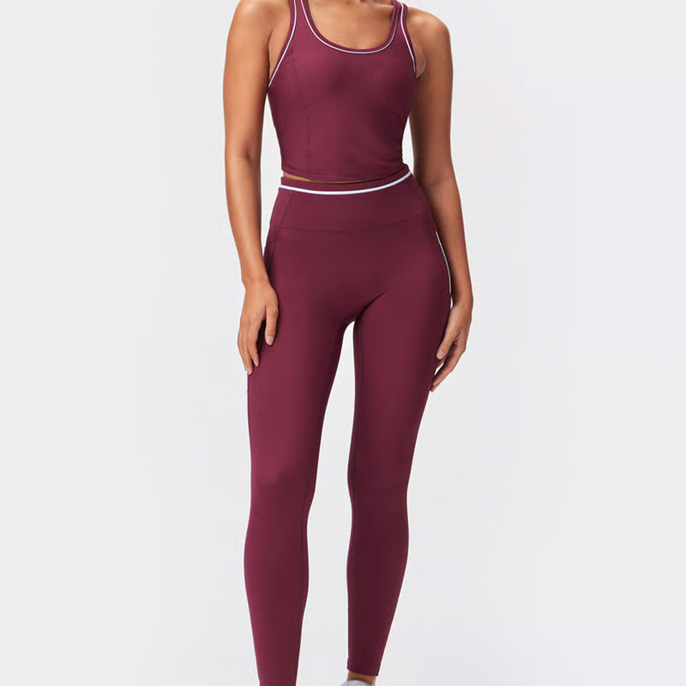 ชุดสปอร์ตบราและกางเกงเลกกิ้งสำหรับผู้หญิงชุดออกกำลังกายคุณภาพสูงสีเบอร์กันดี