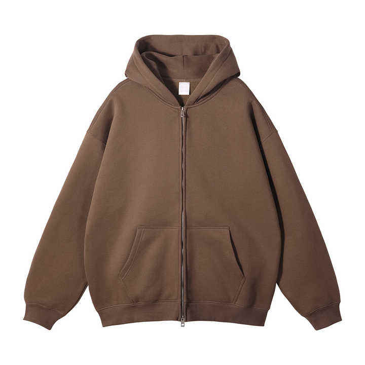 เสื้อฮู้ดดี้โอเวอร์ไซส์แบบซิปเต็มตัวสำหรับผู้ชายและผู้หญิง ผลิตแบบ ODM/OEM ขายส่ง สไตล์ซันเฟด รับสกรีนโลโก้ตามแบบ