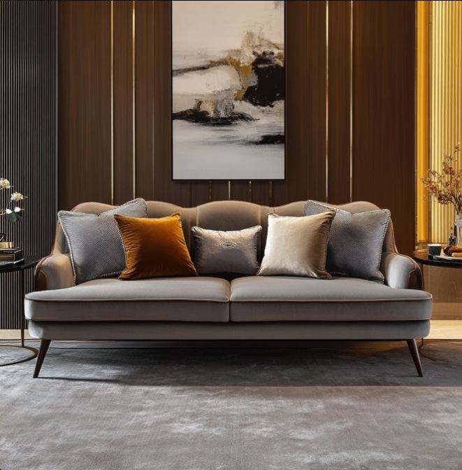 ชุดโซฟาห้องนั่งเล่นทรงสี่เหลี่ยมทันสมัย OE Home โซฟาขนาดใหญ่แบบสองที่นั่ง ดีไซน์อิตาลี โซฟาผ้ากำมะหยี่หรูหรา รับประกัน 5 ปี