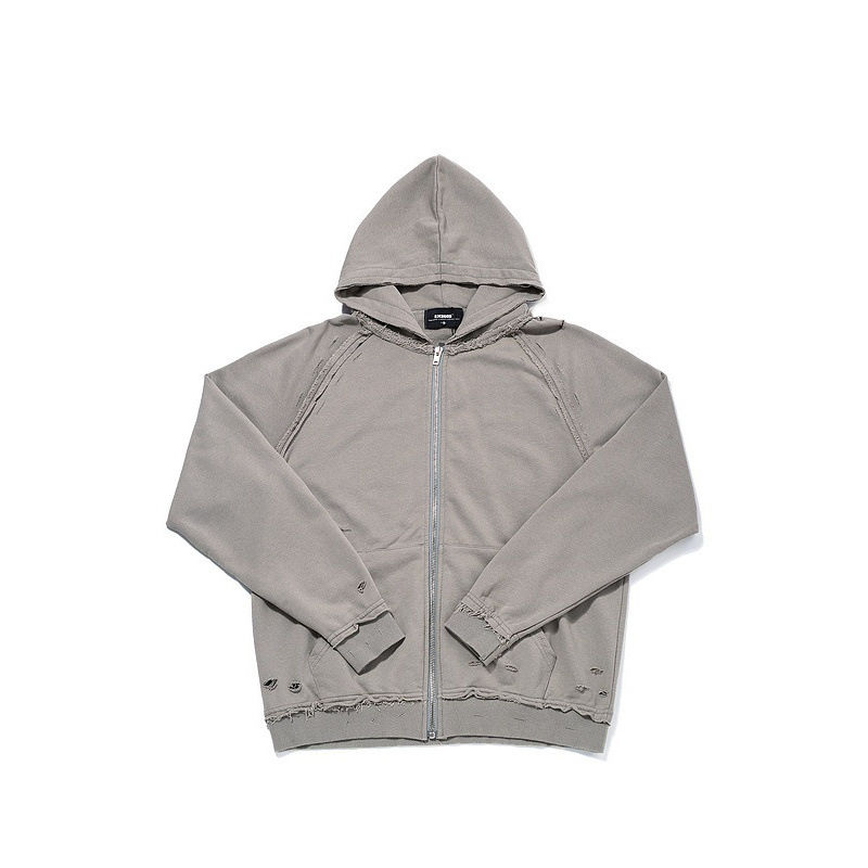 เสื้อสเวตเตอร์ผ้าคอตตอนฟอกไซส์ใหญ่โอเวอร์ไซส์สำหรับผู้ชายเสื้อมีฮู้ดแบบสวมหัวมีซิปรูดซีดลงแดดทำจากผ้าฝ้าย100% งานตามสั่ง