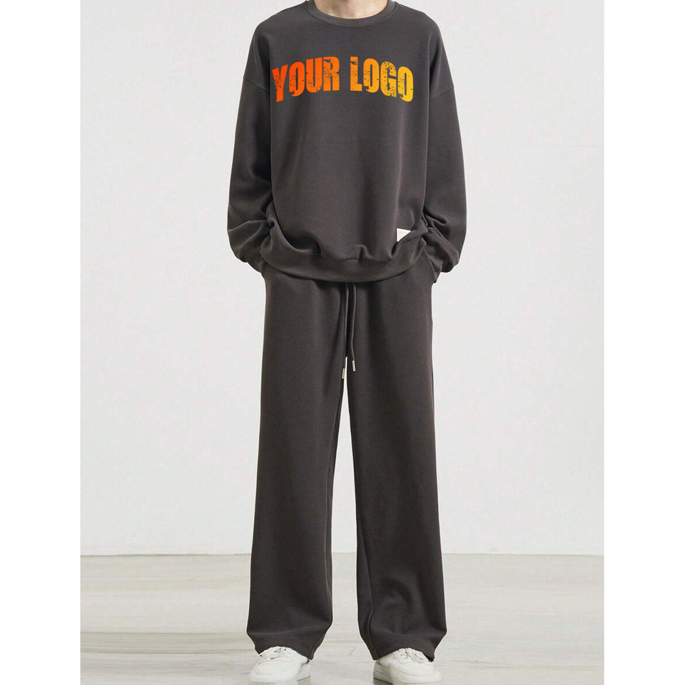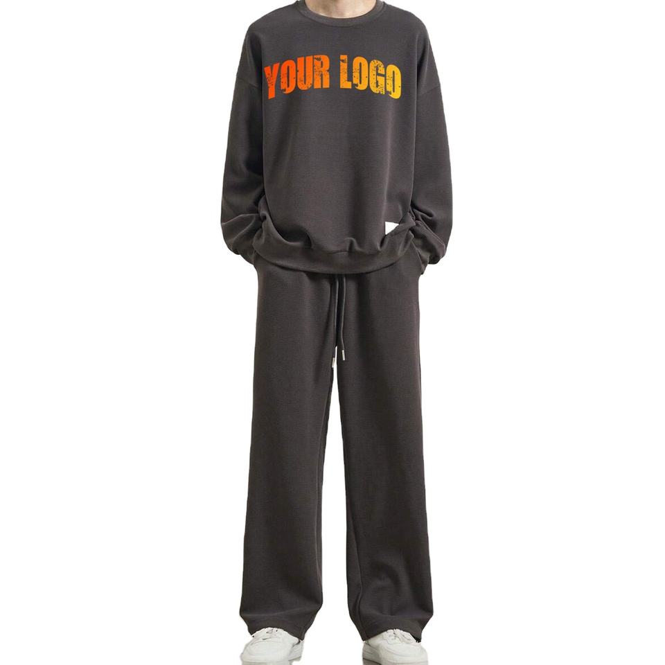 ชุดวอร์มผ้าฟลีซเนื้อหนักทรงปกติสำหรับผู้ชาย OEM ผ้าฝ้ายไมโครไฟเบอร์ 100% สำหรับฤดูหนาว แบบเรียบ พร้อมบริการสกรีนลายตามสั่ง