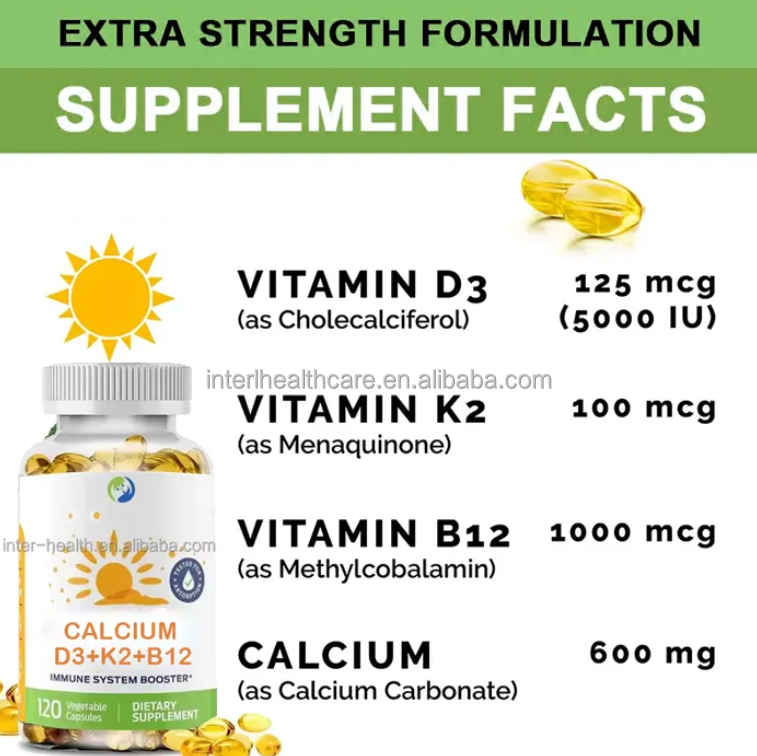 Active Ingredient:Vitamin D3 K2 B12 softgel Capsules
