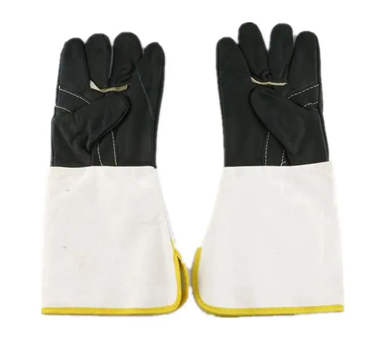 ถุงมืองานเชื่อมหนัง OEM 14 "ถุงมือทำงานปรับแต่งได้ตามต้องการอุณหภูมิสูงทนทาน