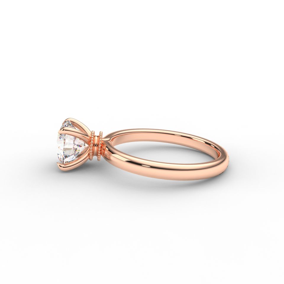 แหวนหมั้นเพชรเม็ดเดี่ยวทรงกลมทองคำขาว/โรสโกลด์/เหลือง 14K แบบ OEM พร้อมเพชรเพาะเลี้ยงในห้องปฏิบัติการที่ได้รับการรับรองจาก IGI สไตล์วินเทจ ชุบโรเดียม