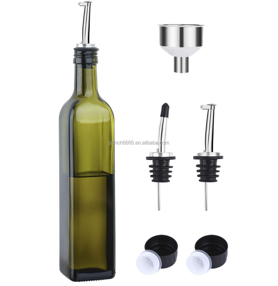 ขวดแก้วขนาด17ออนซ์ขวดใส่น้ำมันมะกอกสีเขียว500มล. ขวดใส่น้ำพร้อมที่เทและกรวยใส่น้ำมันมะกอกสำหรับ ki