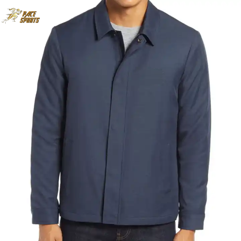 เสื้อโค้ทผู้ชายสีฟ้าทึบเสื้อโค้ทแฟชั่นสำหรับกลางแจ้งดีไซน์ตามสั่ง2025