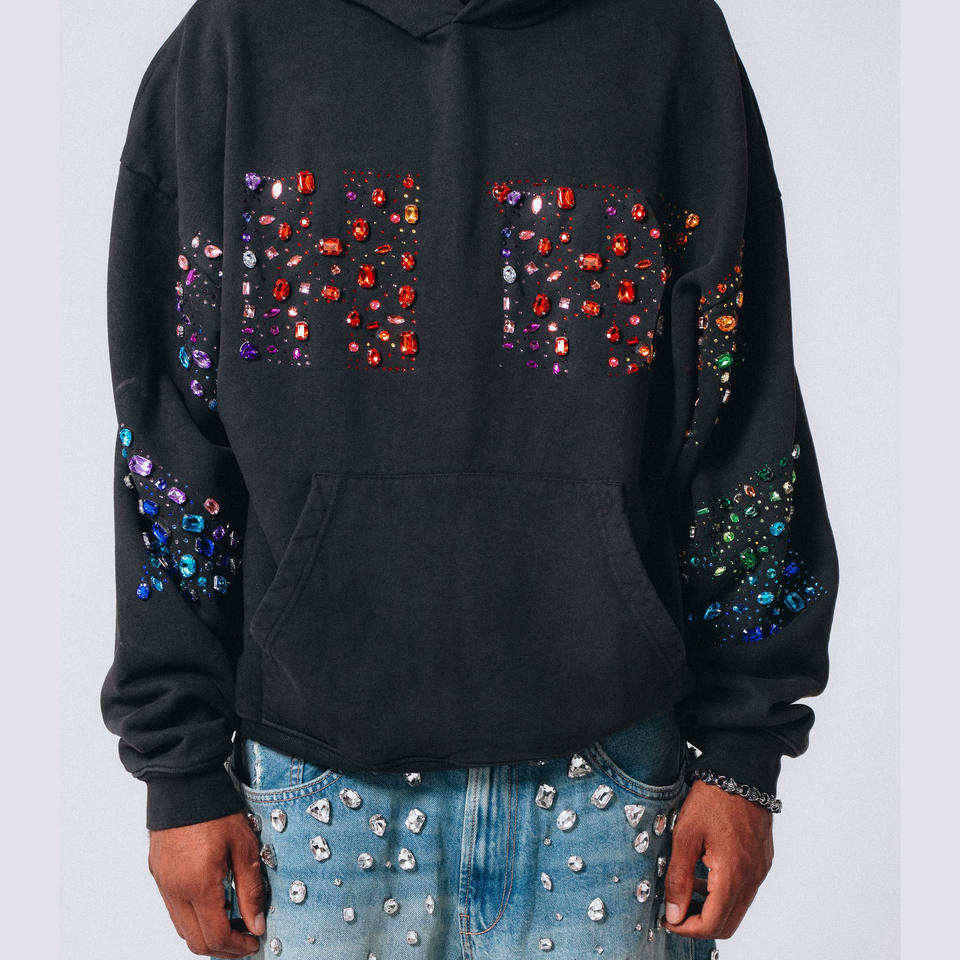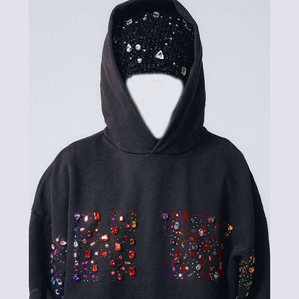 ผู้ผลิตเสื้อผ้า OEM 2026 เสื้อผ้าสตรีทแวร์แบบกำหนดเอง เสื้อฮู้ดดี้สไตล์วินเทจย้อมสีแบบ Stone Wash ประดับคริสตัล สำหรับทุกเพศ