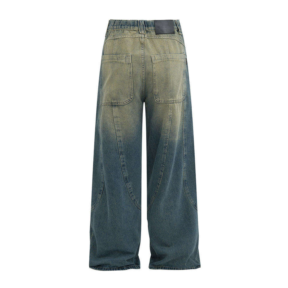 ผู้ผลิตเสื้อผ้า OEM 2026 กางเกงยีนส์ทรงขาบานแบบวินเทจฟอกสี แต่งผ้าปะติด สำหรับผู้ชาย