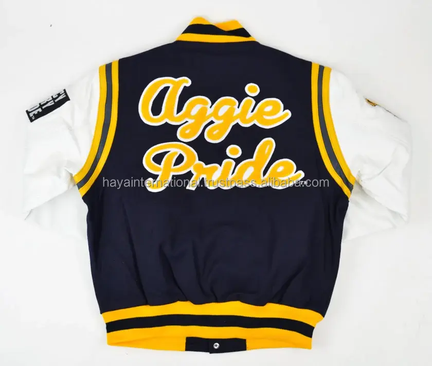 แจ็คเก็ตวาร์ซิตี้ผู้ชายสไตล์ OEM 2026 แบบสั่งทำพิเศษ คอตั้ง ปักโลโก้ด้านหน้า แขนผ้าขนสัตว์และหนัง