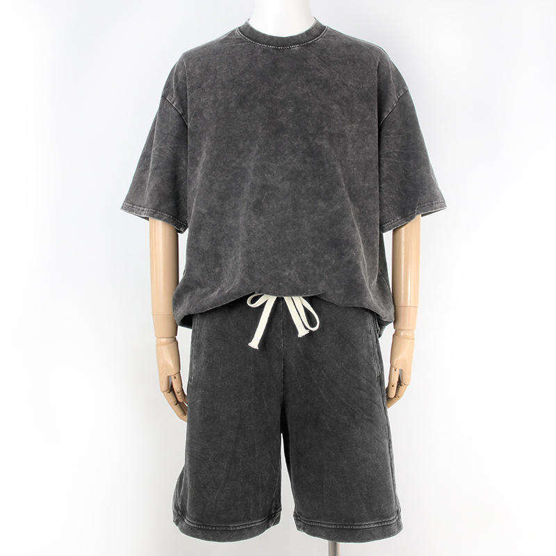 เสื้อยืดและกางเกงขาสั้นผ้าฝ้าย 100% แบบสั่งทำพิเศษสำหรับฤดูร้อน OEM สไตล์สตรีทแวร์วินเทจ ล้างสีแบบแอซิด ฟอกสีซีดจางทรงบ็อกซี่โอเวอร์ไซส์สำหรับผู้ชาย