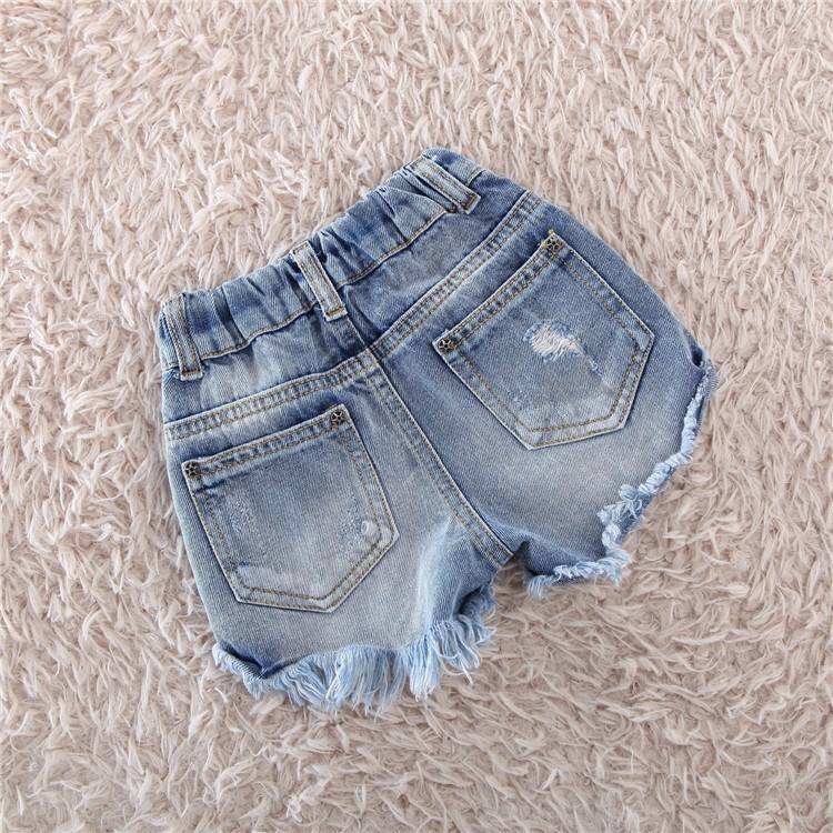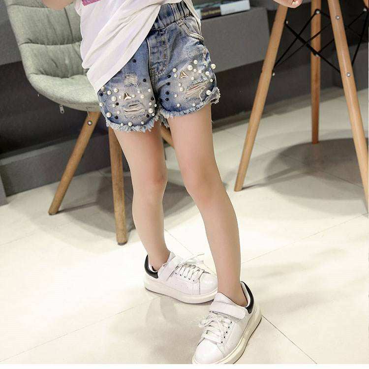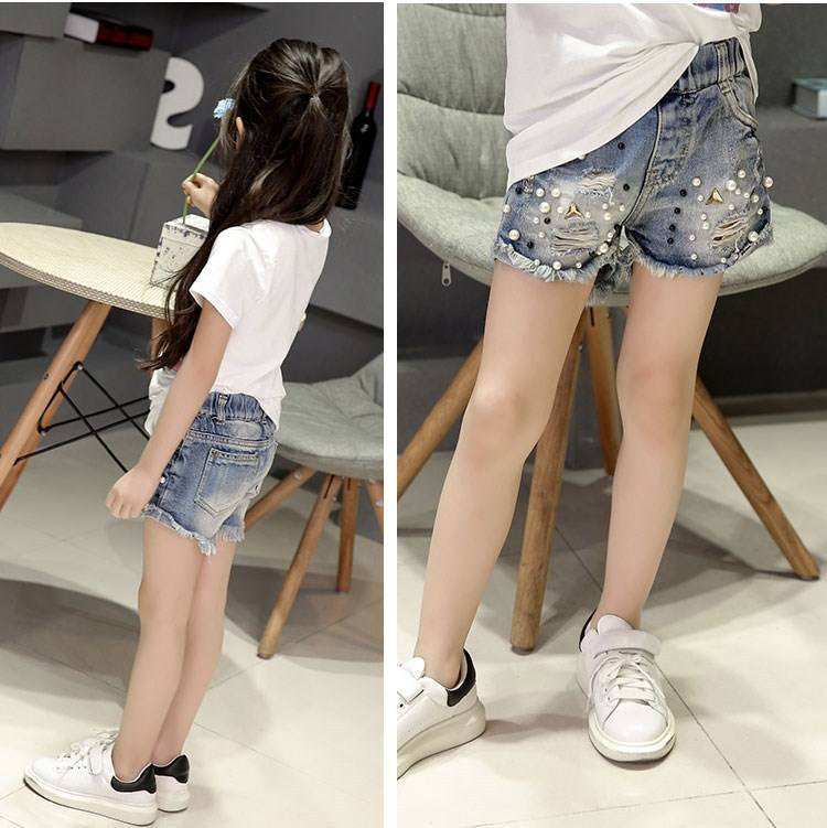 กางเกงยีนส์เด็กผู้หญิง OEM 2026 รุ่นซัมเมอร์ คุณภาพสูง ล้างสีมุก แต่งรู ยืดหยุ่น น่ารัก กางเกงขาสั้นเดนิม