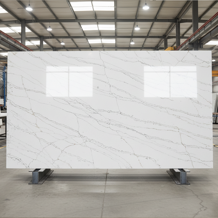 เทียม calacatta แผ่นหินควอตซ์สีขาว
