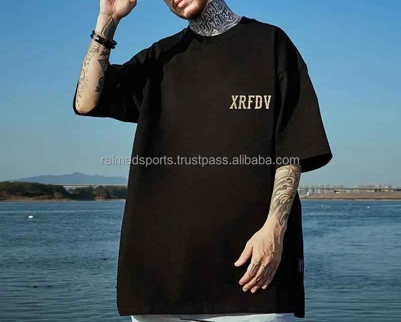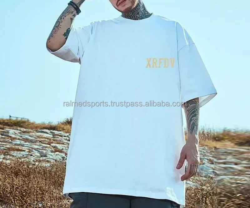 เสื้อยืดคอกลมแขนสั้นสำหรับผู้ชายเสื้อยืดลายโอเวอร์ไซส์สำหรับฟิตเนสของลูกเรือ230 GSM สั่ง100% โลโก้ได้ตามต้องการ