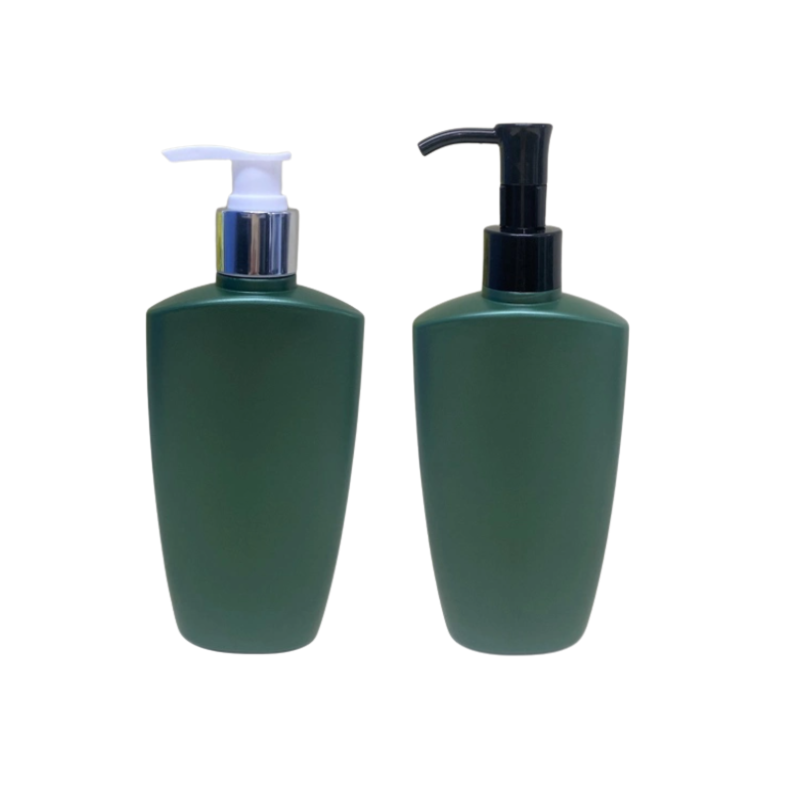 OEM ขวดพลาสติก HDPE แบน250มล. พร้อมบรรจุภัณฑ์ปิดผนึกปั๊มสำหรับเครื่องสำอางแชมพูครีมนวดผมความจุต่างๆ