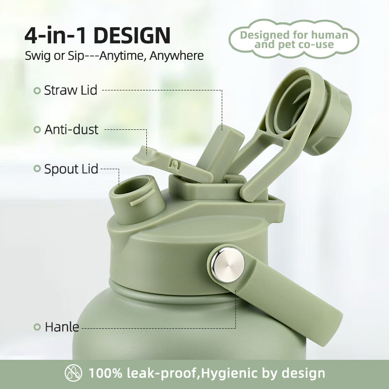 ขวดน้ำเก็บความร้อนแบบ3 in 1สำหรับสัตว์เลี้ยงความจุ32ออนซ์ทำจากสเตนเลสสตีลมีฉนวนกันความร้อนสองชั้นสำหรับสุนัขแมวกลางแจ้ง