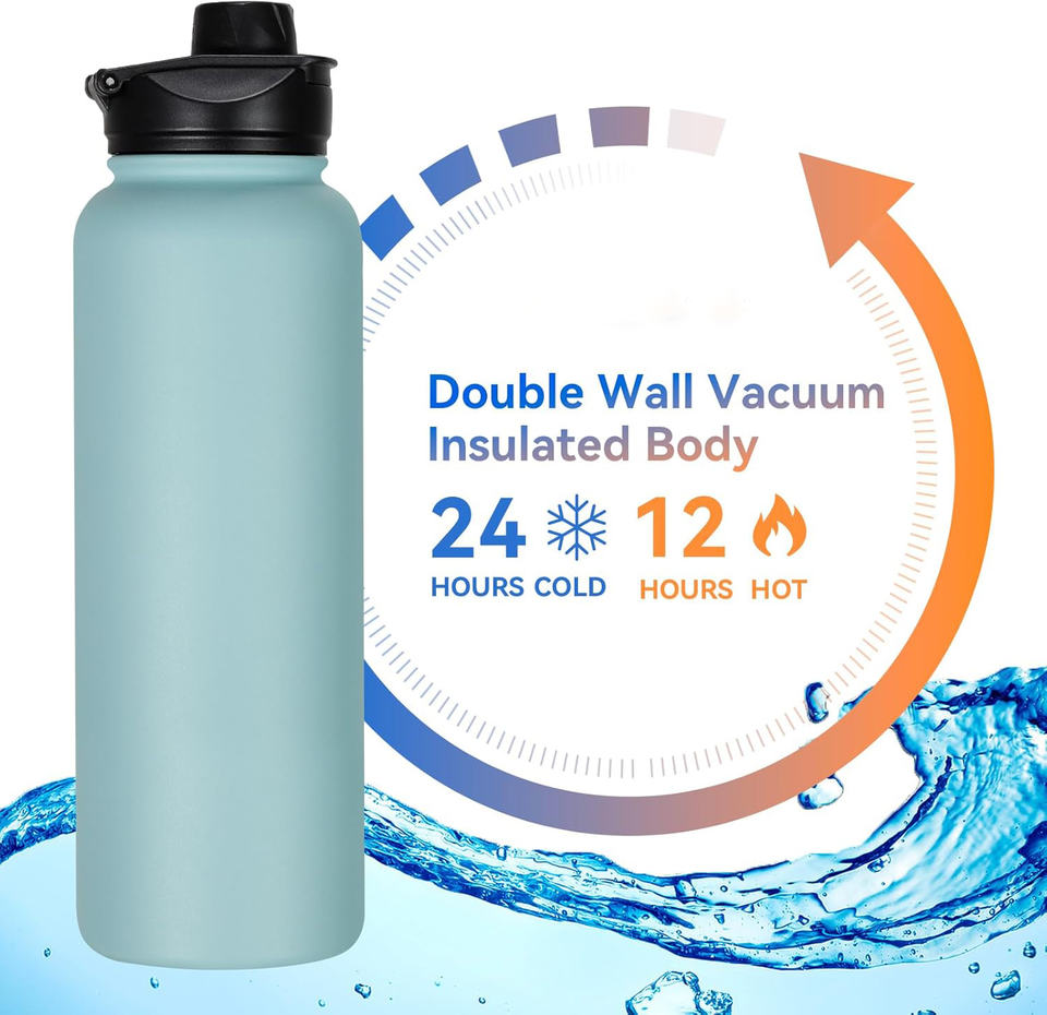 OEM กระติกน้ำสุญญากาศผนังสองชั้น32ออนซ์40ออนซ์กระติกน้ำกีฬาขวดน้ำสแตนเลสออกแบบได้ตามต้องการพร้อมฝาปิดแบบมีด้ามจับ