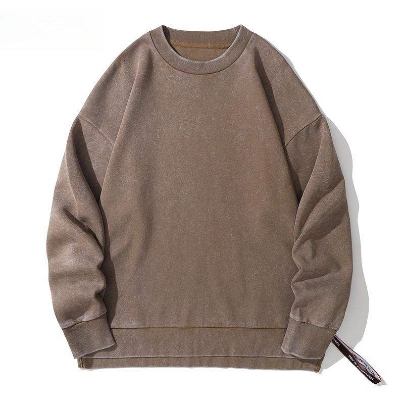 เสื้อสเวตเตอร์คอกลมของผู้ชายสำหรับใส่ได้ทั้งชายและหญิงผ้าคอตตอนลายปักโลโก้ไซส์ใหญ่พิเศษ430กรัม