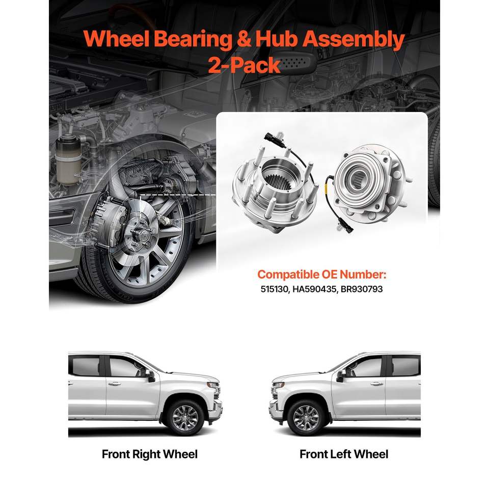 OEM 515130 Front Wheel Bearing Hub Assembly Set for 2016 for Ford F-250 Super Duty Base King Ranch Lariat Platinum XL Crew Cab