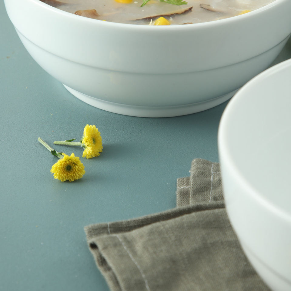 ชามใส่ข้าวต้มทรงกลมสีขาวใช้กับไมโครเวฟปลอดภัยชามเซรามิคพอร์ซเลนสำหรับใส่ซุปก๋วยเตี๋ยว