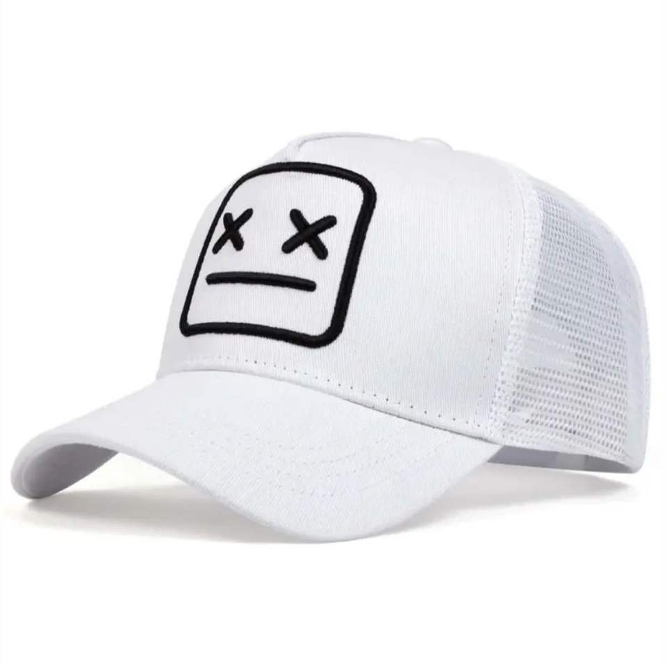 หมวกแก๊ปตาข่ายทรงสูง 6 แผง สำหรับผู้ชาย แบบ unisex ผลิตจากโพลีเอสเตอร์ คุณภาพสูง รับสกรีนโลโก้ หมวกเบสบอลแบบ trucker พร้อมเชือก