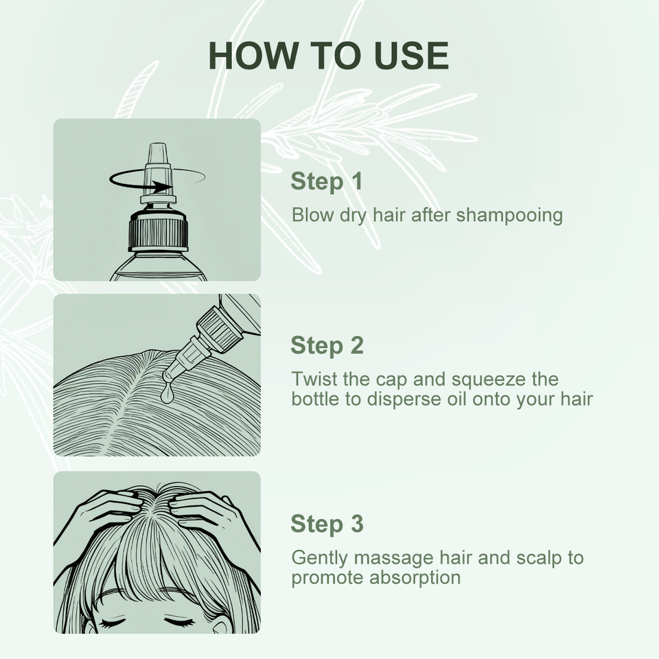 สมุนไพร, น้ำมันละหุ่ง, น้ำมัน Batana, เคราติน, ธรรมชาติ, น้ำซาวข้าว, น้ำมันเปปเปอร์มินท์, น้ำมันโรสแมรี่, น้ำมันเชเบ, น้ำมันเมล็ดฟักทอง, ไบโอติน