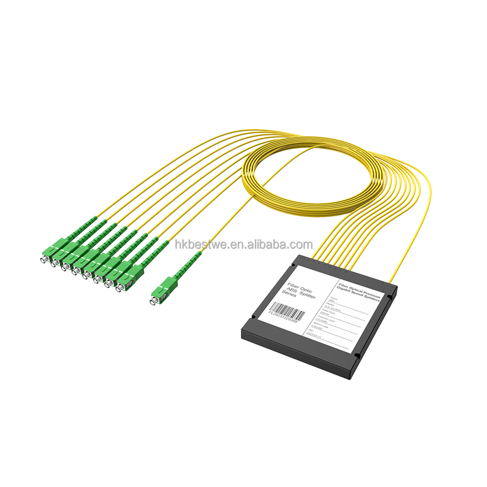 ตัวแยกสายไฟเบอร์1*8สำหรับเครือข่าย FTTH ตัวแยกสายไฟเบอร์แบบเดี่ยวโหมด Splitter sc/apc